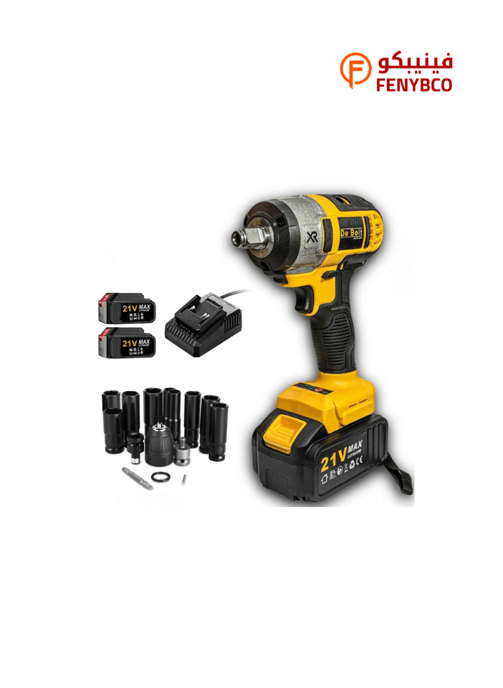 مفتاح كفرات لاسلكي من DEBOLT بجهد 21 فولت وعزم يصل إلى 330 نيوتن متر، مناسب لفك وربط صواميل السيارات. يأتي مع بطاريتين وشاحن وشنطة، مع إمكانية تحويله لدريل باستخدام رأس إضافي.